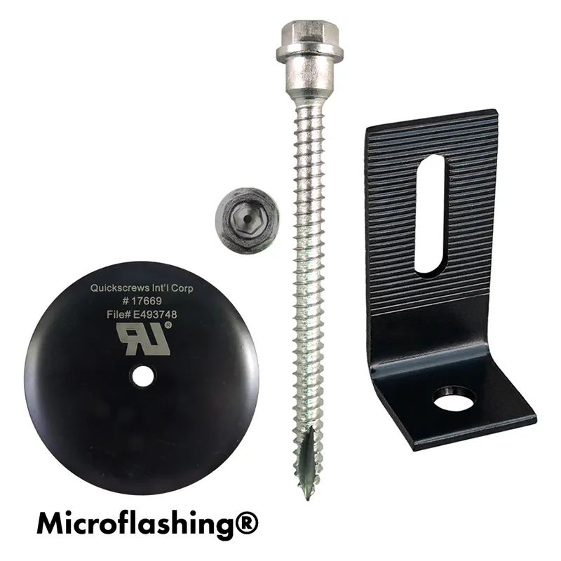 Boltseal® technology relies on torque-driven compression – if it can’t compress then it won’t seal. To compress the Microflashing® properly and protect the penetration from water intrusion, installers must hit the rafter. When you drive the QB2 (PN 17662) into our L-Foot and Microflashing®, BoltSeal® gets to work: the compression shoulder of the bolt forces the Microflashing® into the penetration, creating a watertight seal that doesn’t require other sealants.