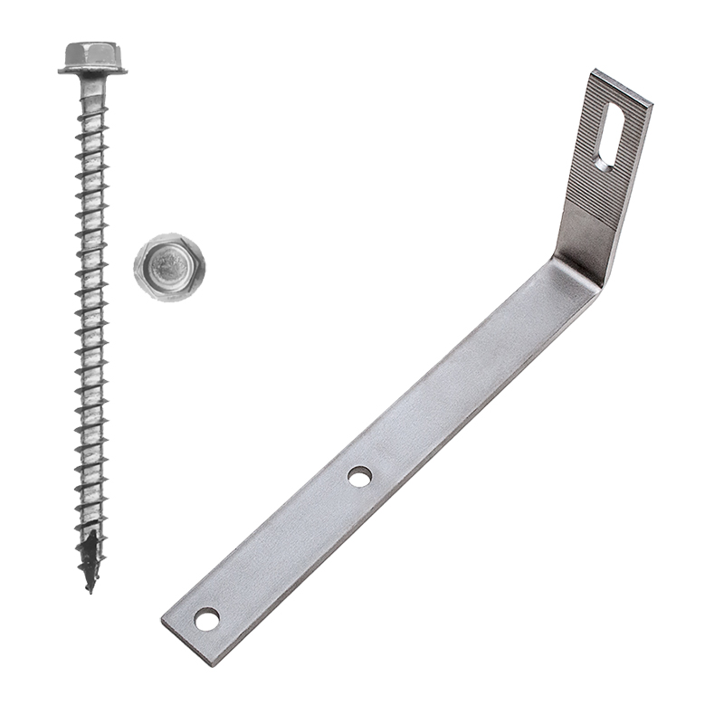 180° Flat Tile Roof Hook, 38mm Height Kit with 1/4" X 3" Screws. Type 304 Stainless Steel